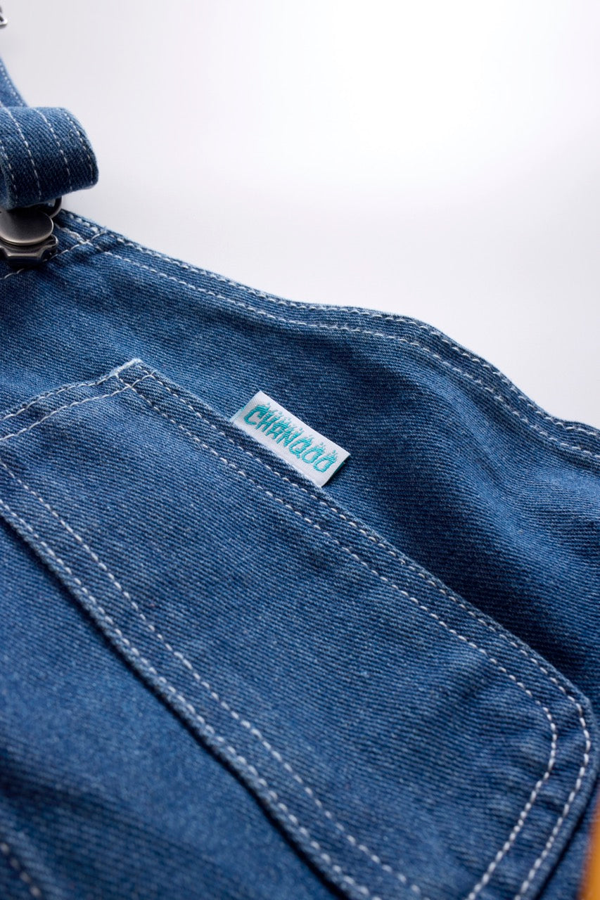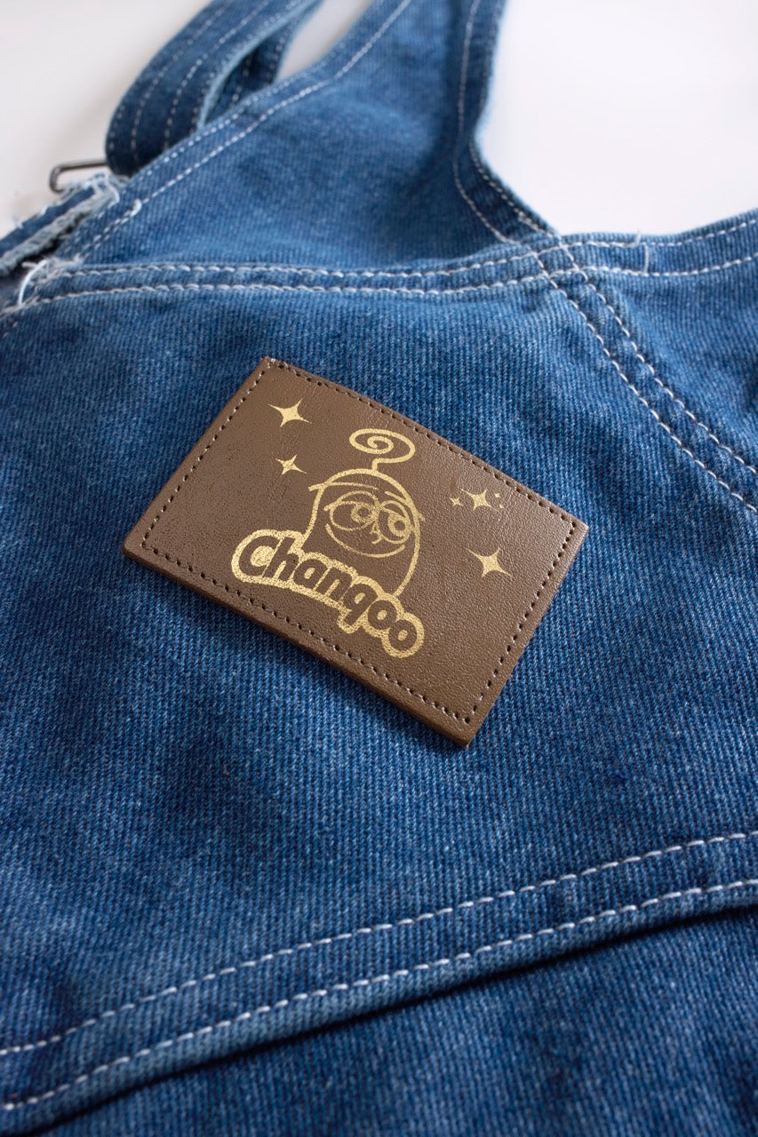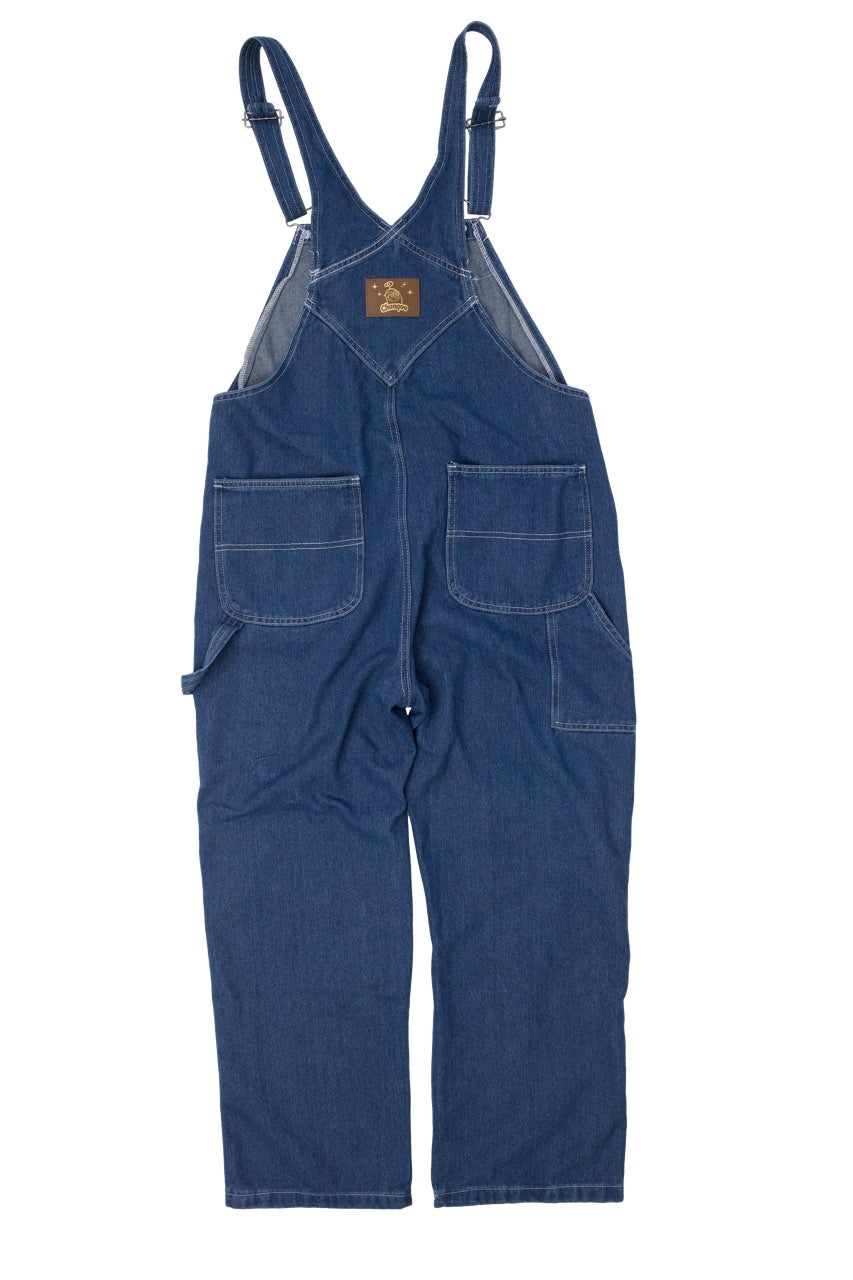 夢見る親指マンが本革に印された 特別なオーバーオールです。 着ている人はみんな兄弟!