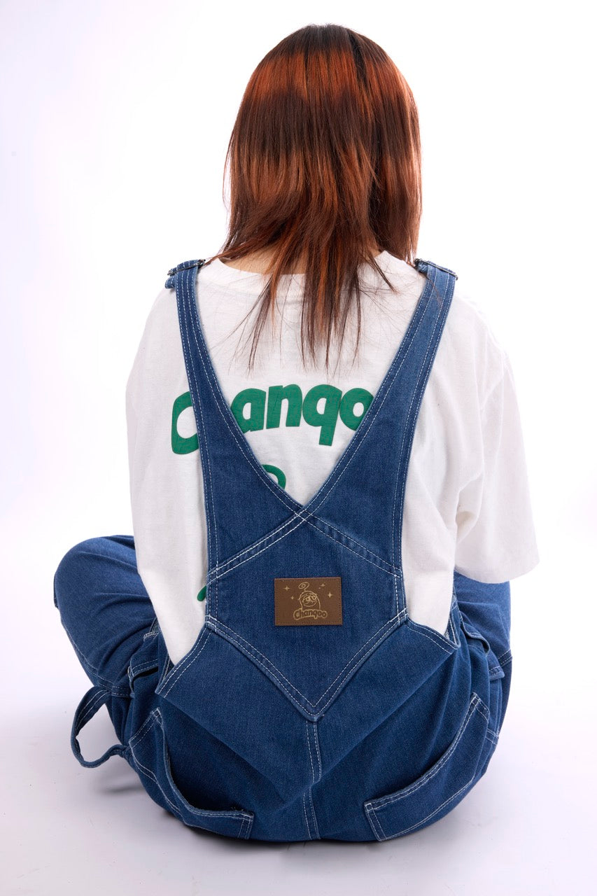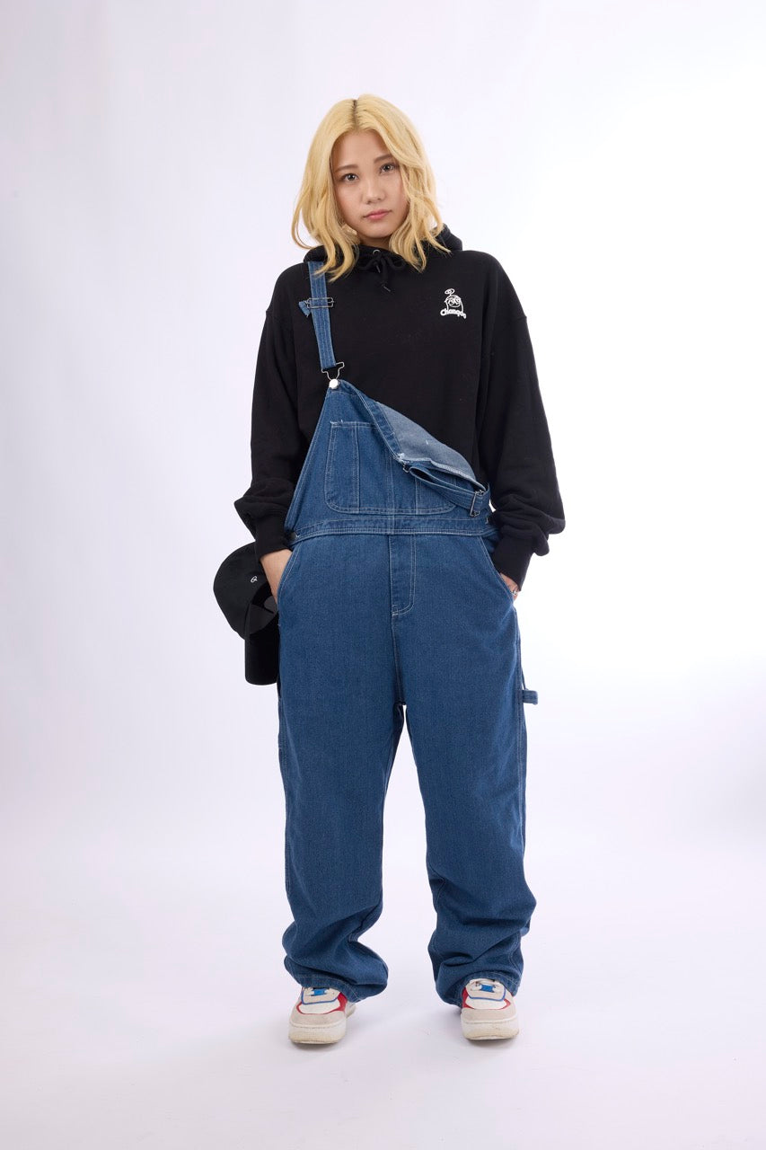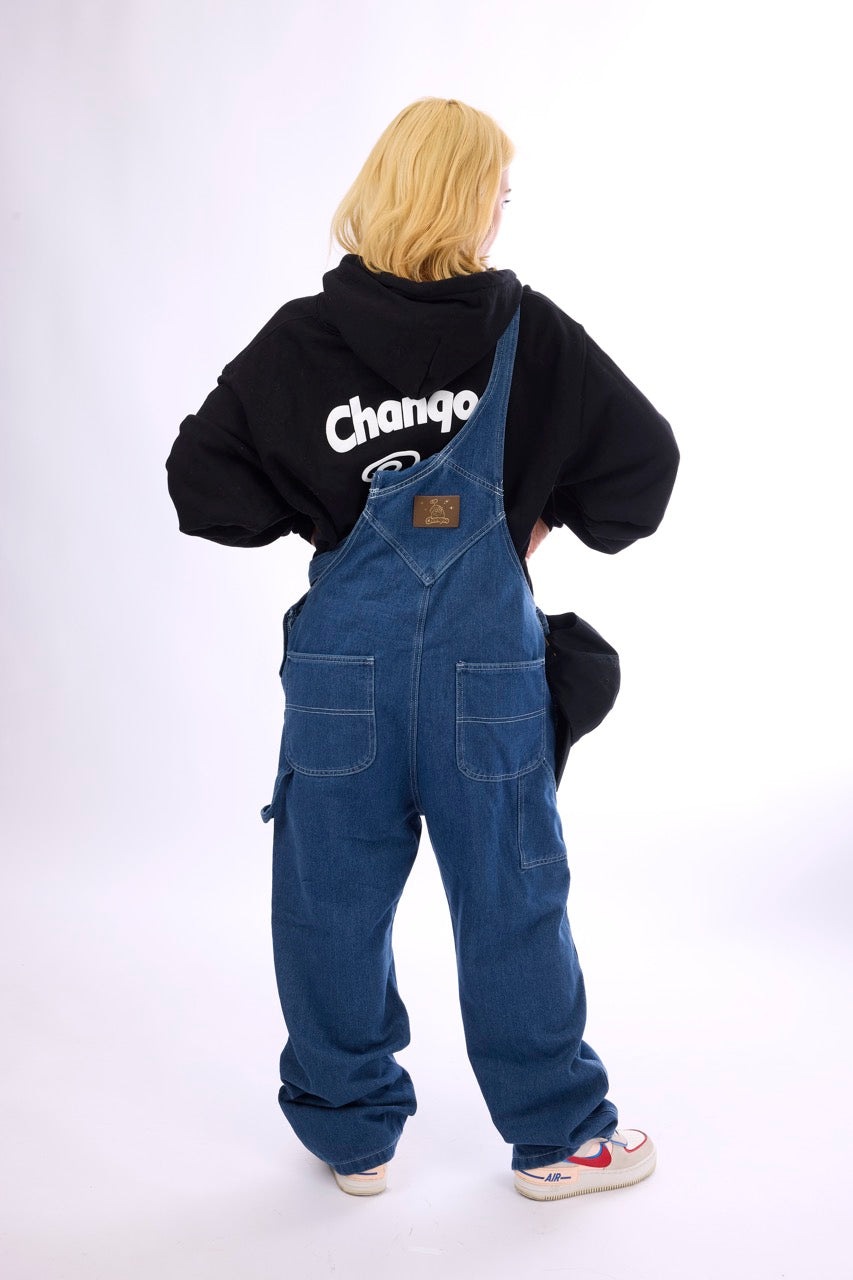 夢見る親指マンが本革に印された 特別なオーバーオールです。 着ている人はみんな兄弟!