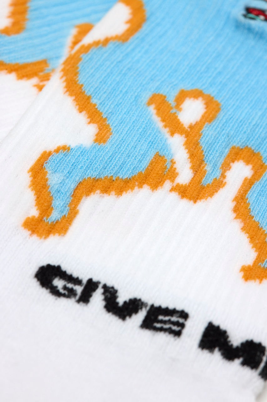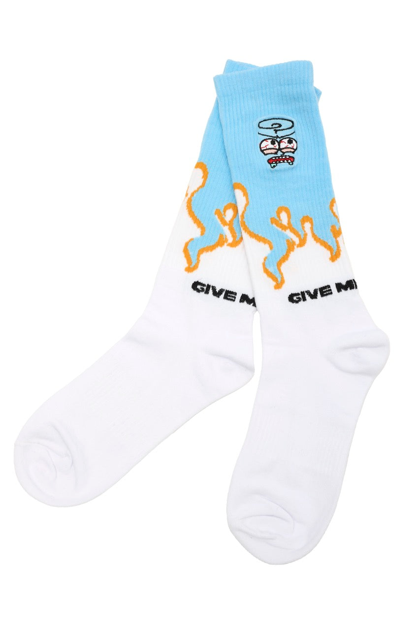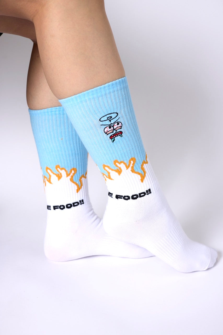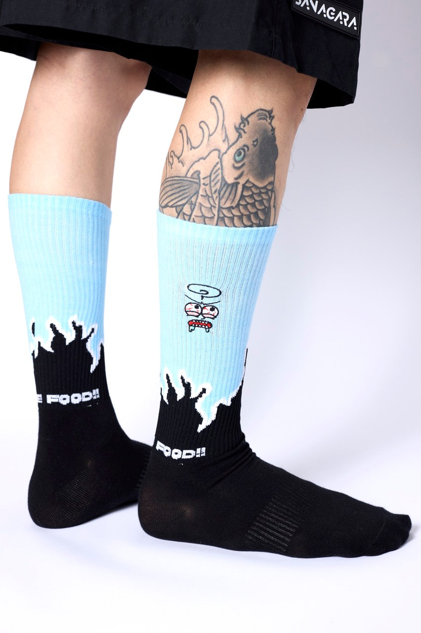 「GIVE ME FOOD!!」 腹ペコの親指マンが血眼で叫んでいます。 暴れないようにソックスにしました!