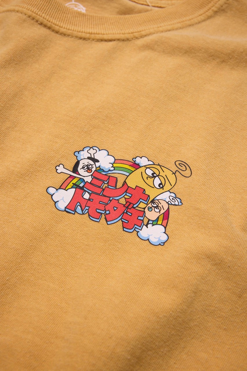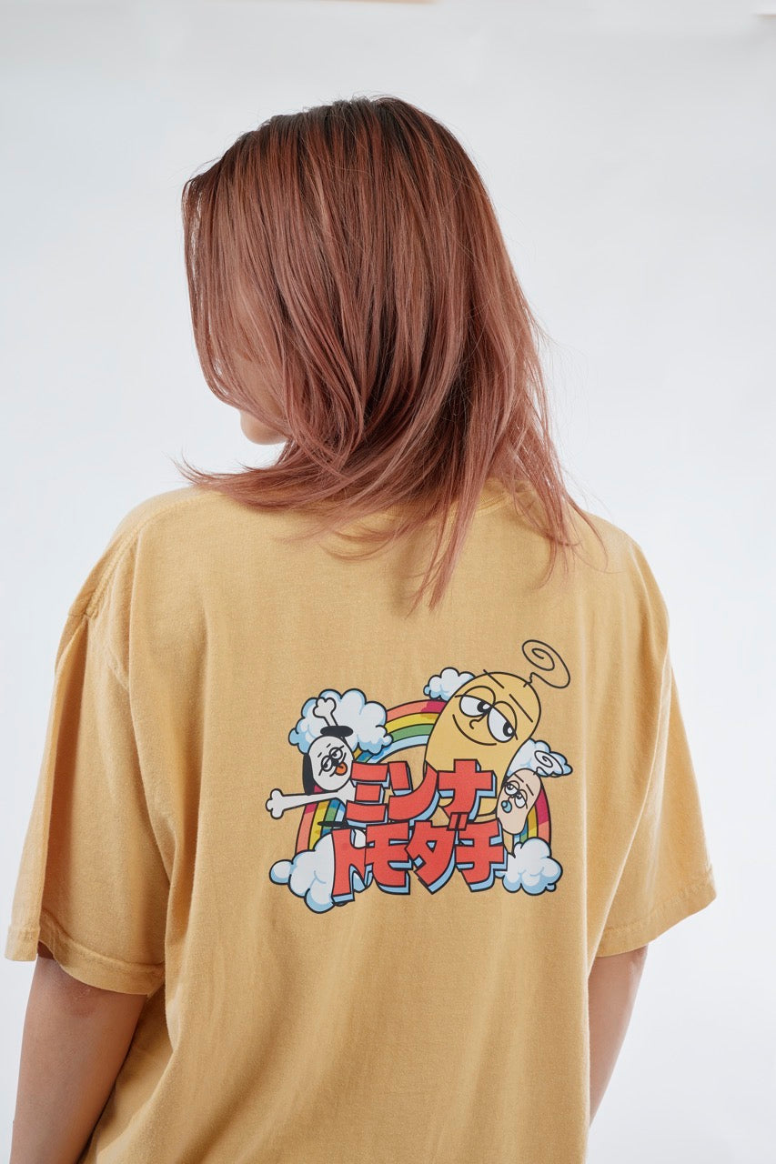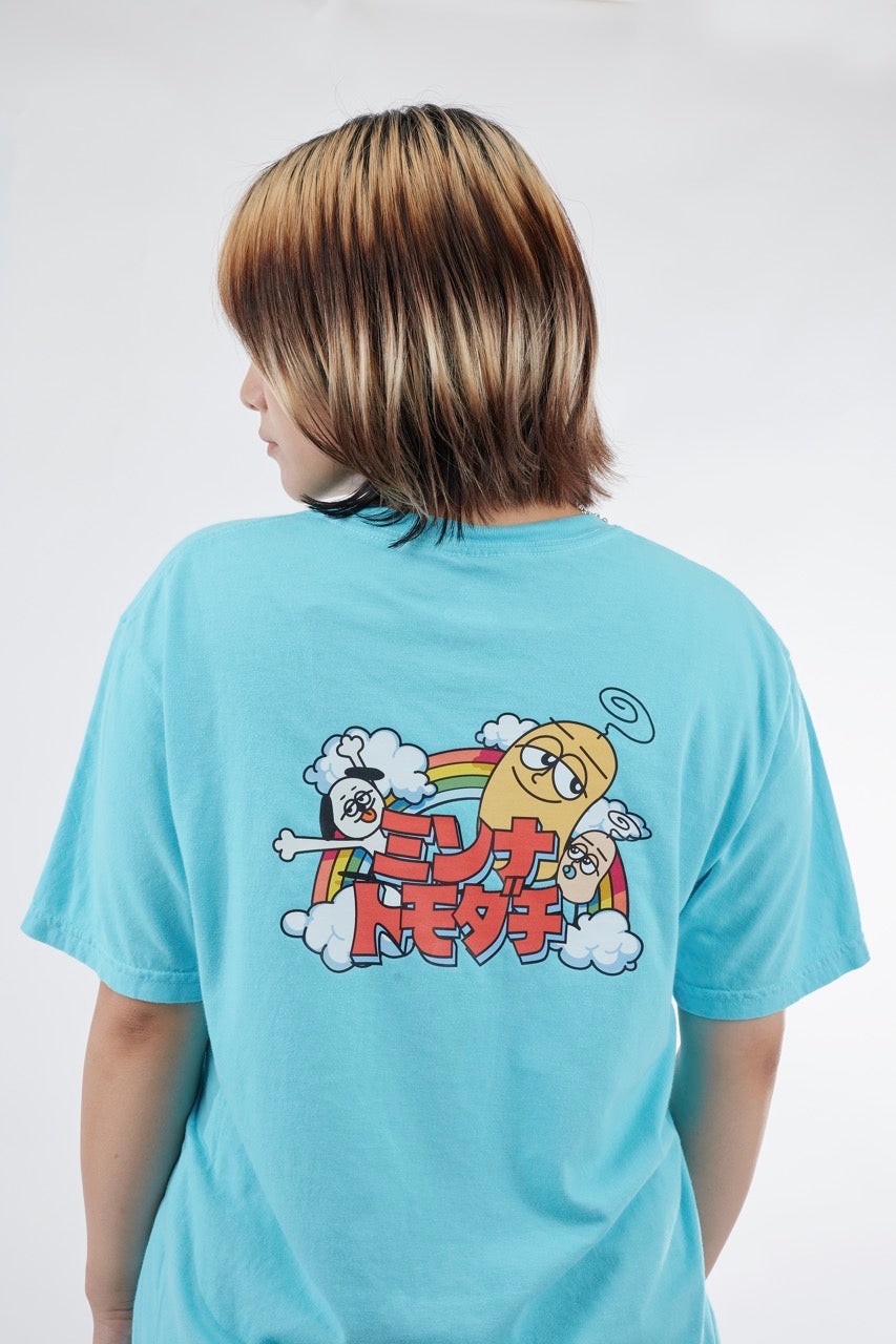 ミンナトモダチ🆕デザインの ミントモTシャツ🫱🏼🫲🏽🌈 柔らかい肌触り、色も淡くて可愛い〜😌 虹は雨が降ってその後に訪れる🌈 雨がないと虹には出会えない 悲しい時も幸せな時も、ワタシはトモダチなんだよ! そんな気持ちです❣️ キュートなわんころと、ベビ指マンに親指マン🐶👶🏽👍🏼 みんなでお揃いのトモダチシリーズ! 重ね着などで差し色にも可愛い カラーラインナップです☀️
