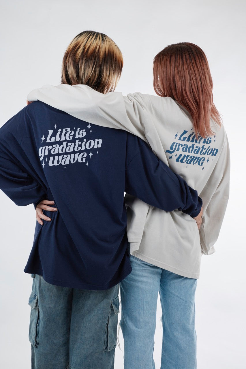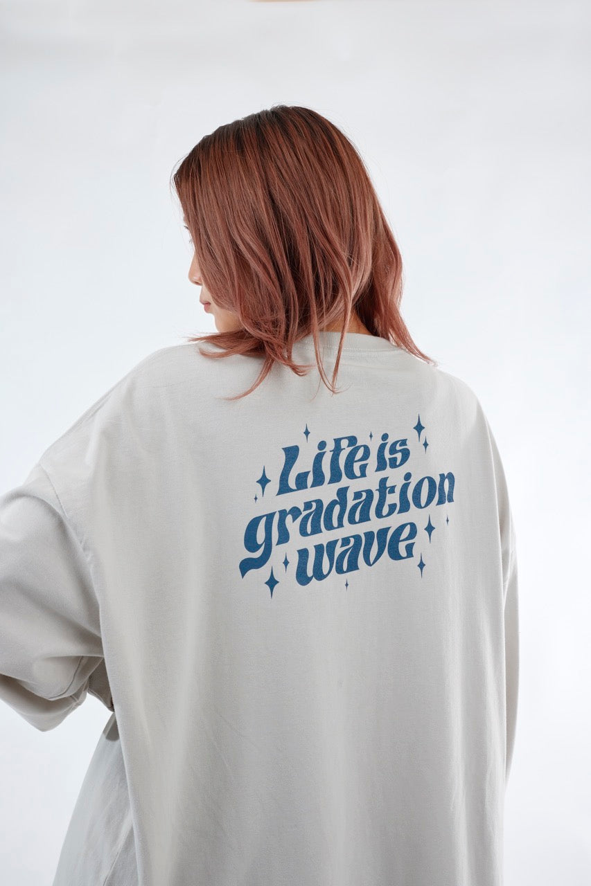 Life is gradation waveシリーズのロンT⭐️ 胸元にはキラキラ親指マン👍🏼✨ 背中にはキラキラLife is gradation wave🌈✨ 一人一人の色や波動、それがグラデーションのように混ざり合っている🌈 それが人生❣️ ビッグシルエットになっているので ゆったりと着られます🌼