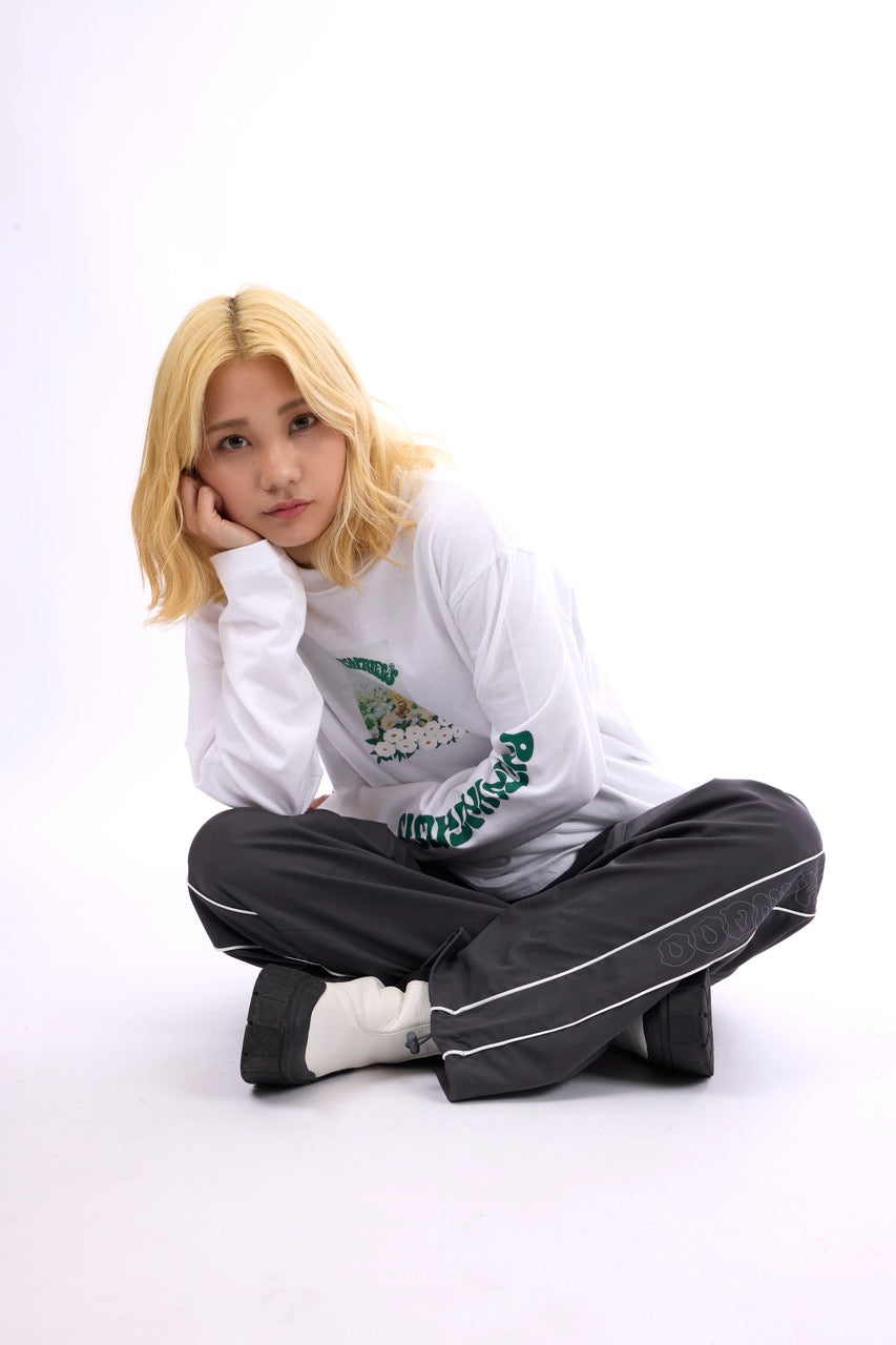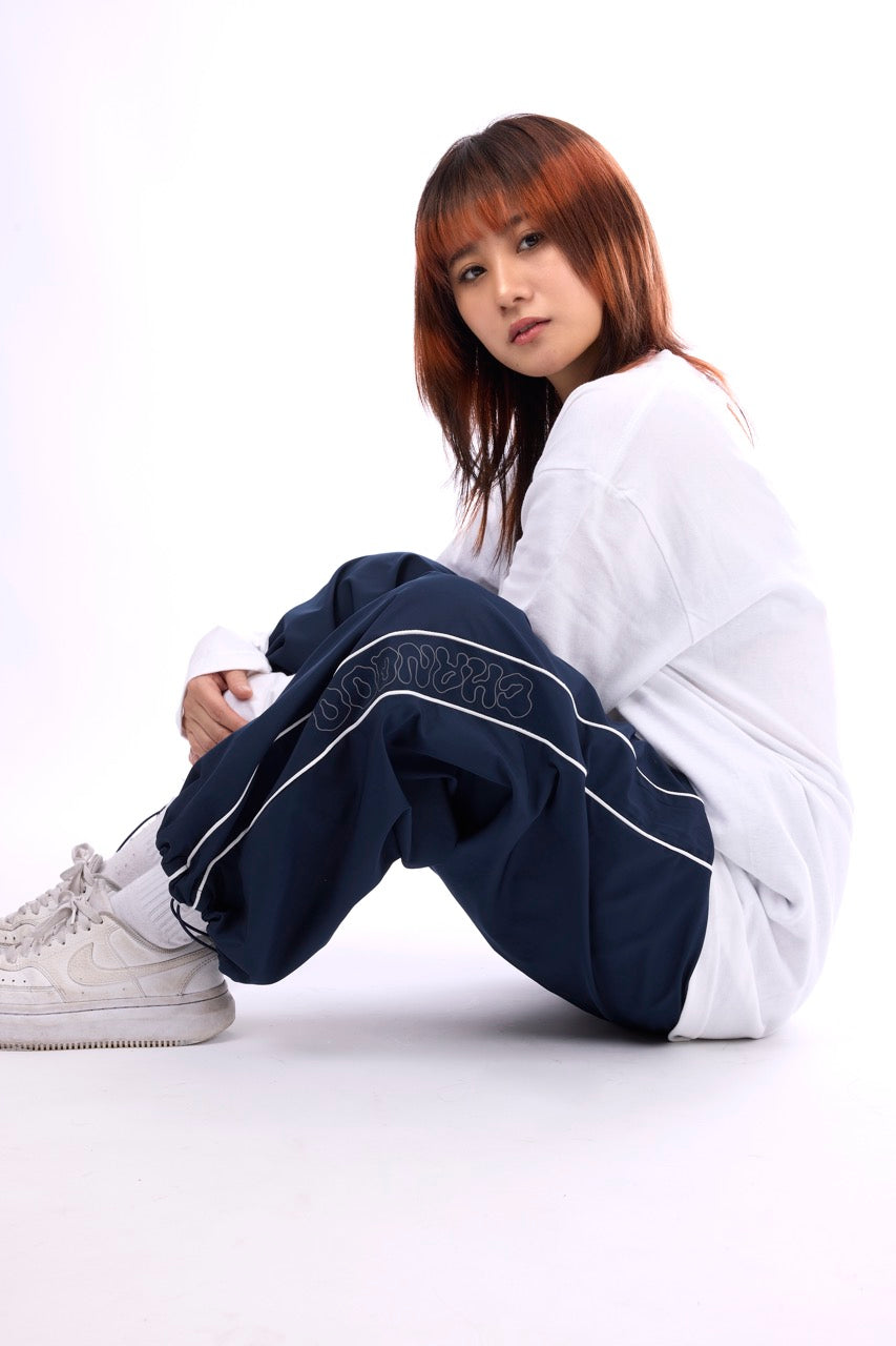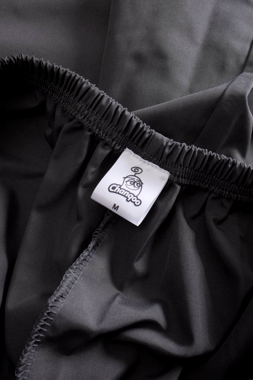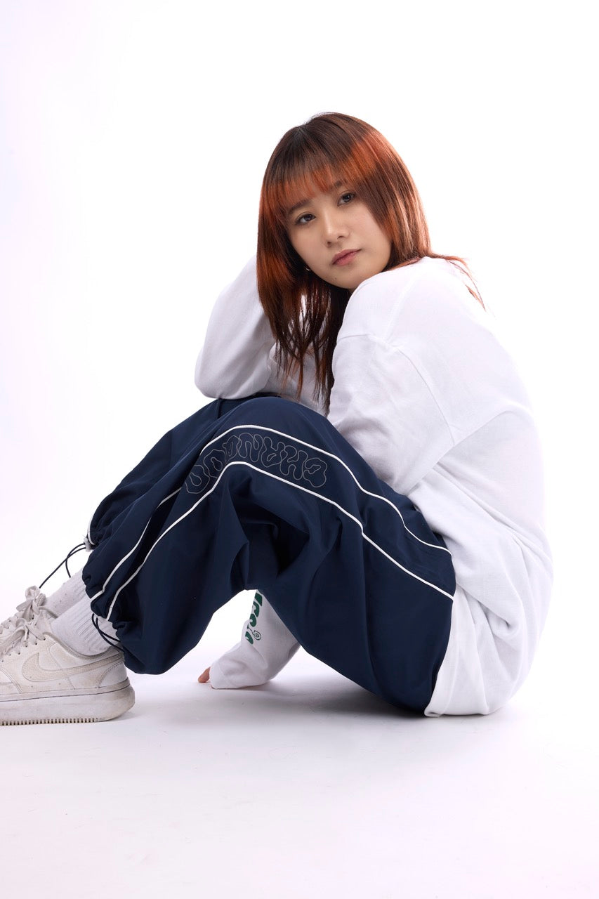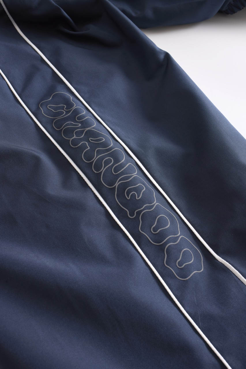 銀色の糸で刺繍されたぐるぐる、 膝下のふにゃふにゃChanqooロゴ☁ ふにゃふにゃロゴはリフレクターになっていて フラッシュをたいて撮影すると光ります✴ 一年中使える新アイテムです!